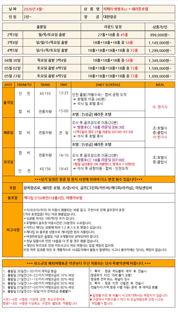 | 여행기간 | 2026년 04월 25일 (토) ~ 2026년 04월 27일 (월) 2박 3일 |