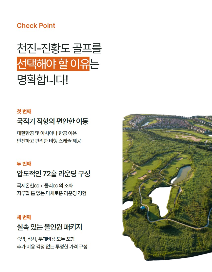 3️⃣기존의 산둥반도(위해, 연태, 청도) 골프장은 너무 자주 가서 새로운 지역의 골프장을 갈망하는 골퍼들을 위한 천진 진황도 2색 또는 3색 상품