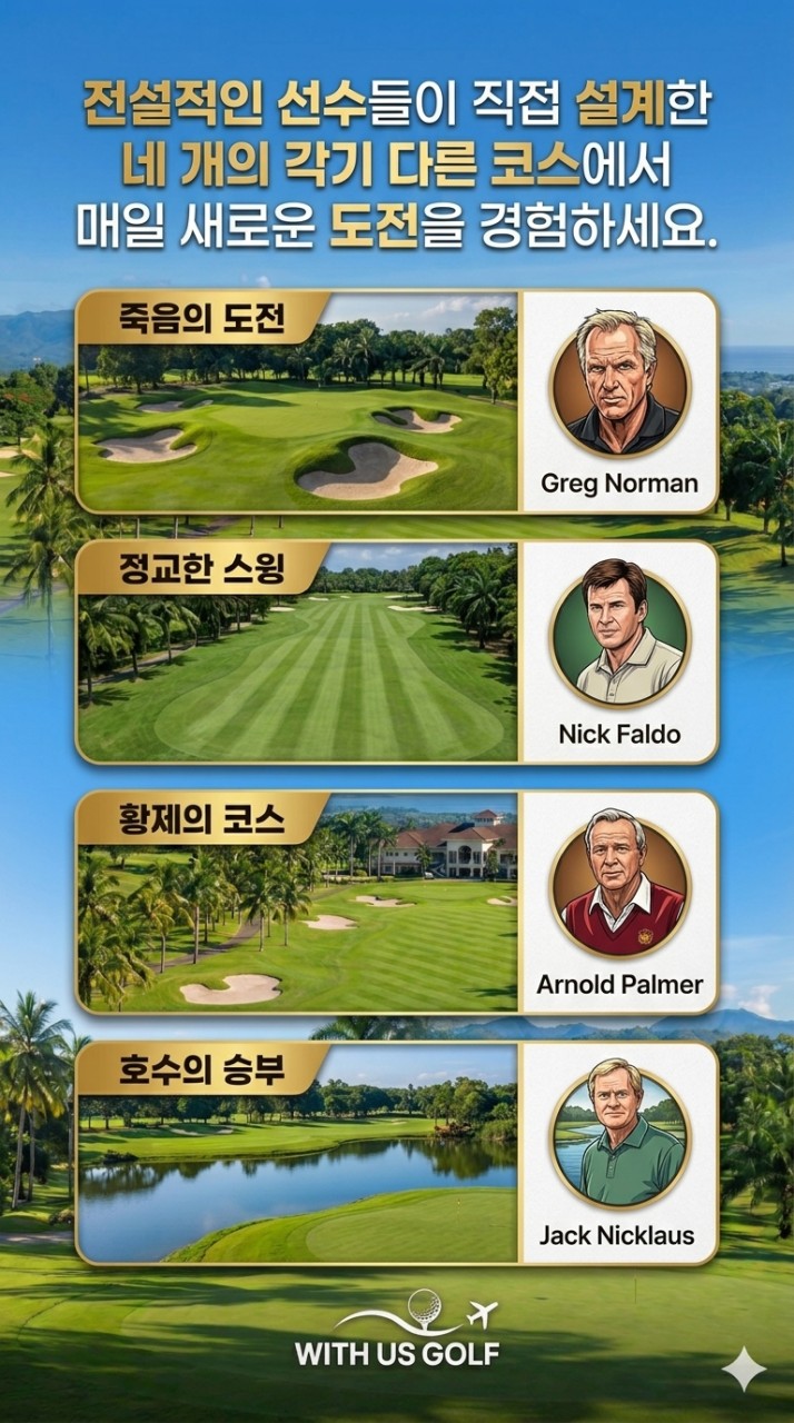 ↪️전체면적이 약 200만평으로 4개의 골프코스를 운영하는 대형 골프장으로 그린과 코스 관리도 잘되어 있어서 필리핀 내에서도 유명한 골프장으로 손꼽힙니다.↩️