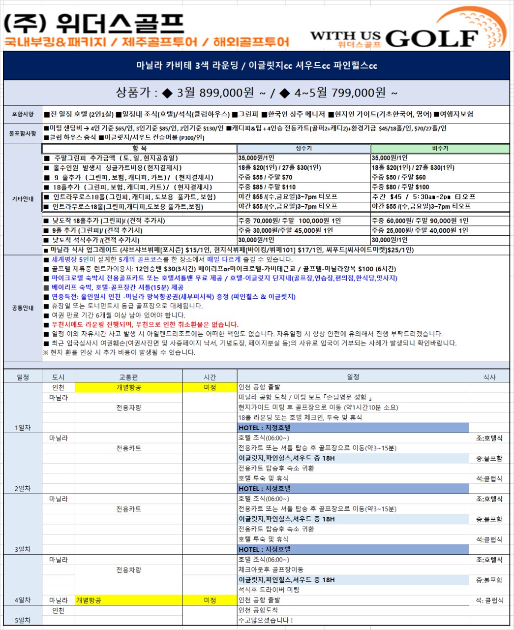 ■ 주말금액 \35,000/1인 (그린피 )