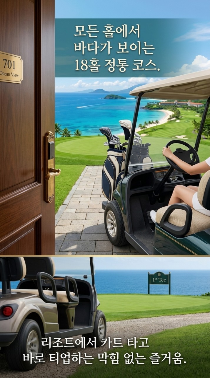 눈앞에 펼쳐지는 에메랄드 바다. 모든 VIP 골퍼를 위한 여유로운 프리미엄 골프 휴양