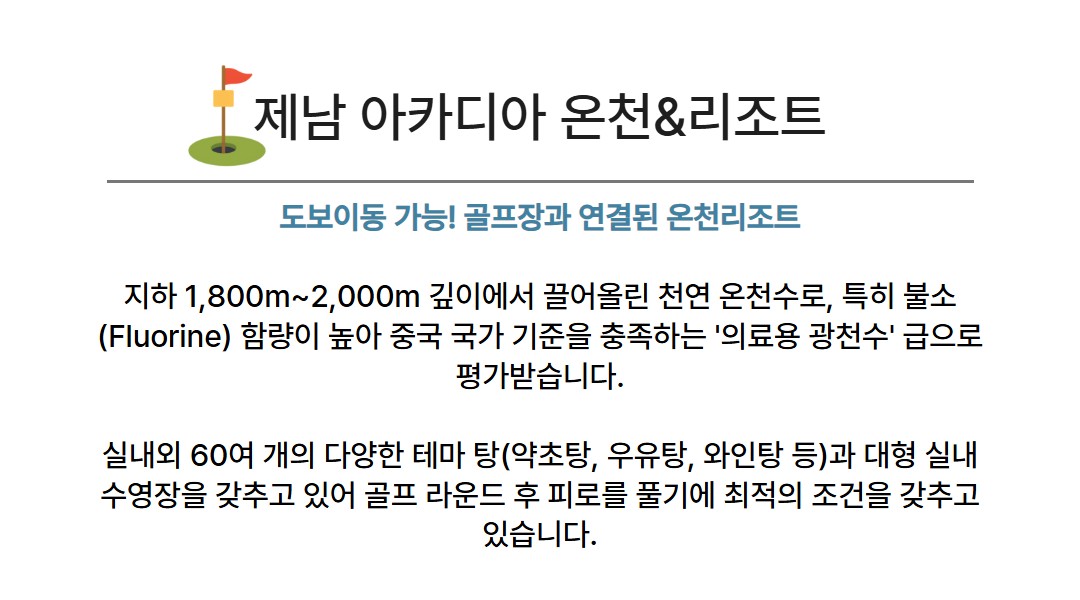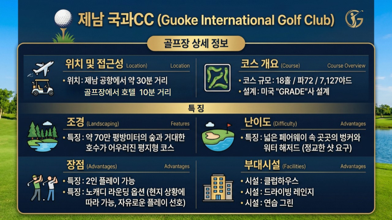 지친 일상을 뒤로하고, 제남의 맑은 공기와 푸른 페어웨이에 몸을 맡기세요.