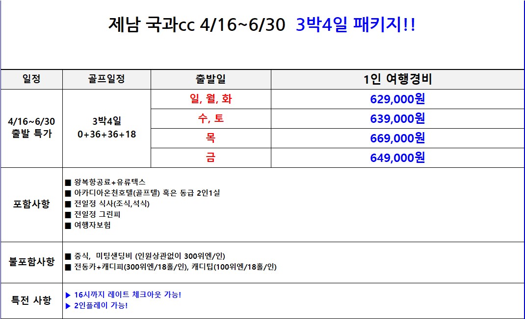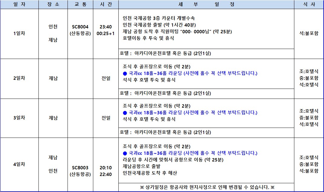 👉제남 국과cc 3박4일 매일출발 항공패키지