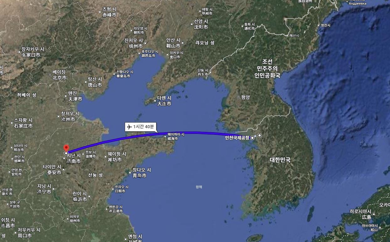 항공편 중국 산동항공 석석 (1시간 40분 가량 소요)