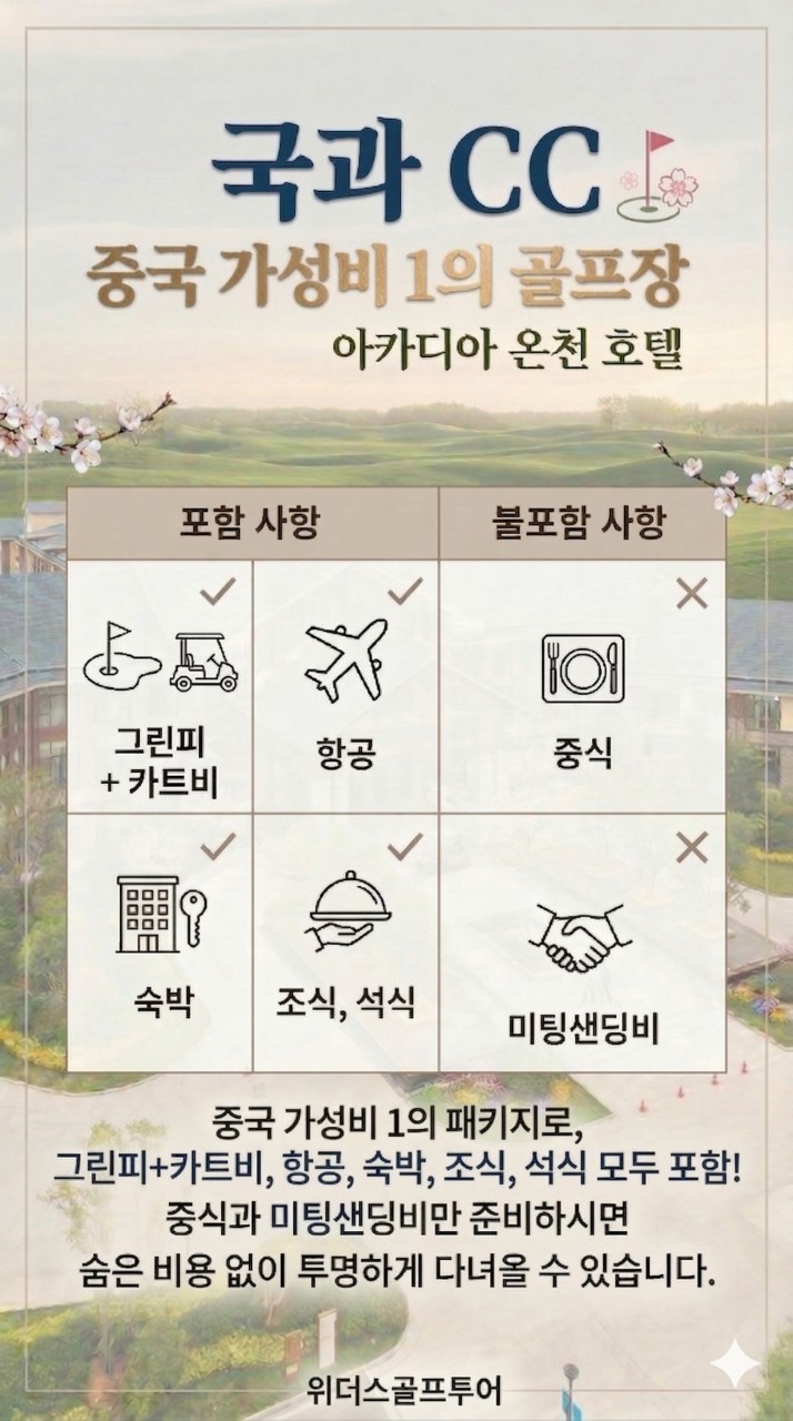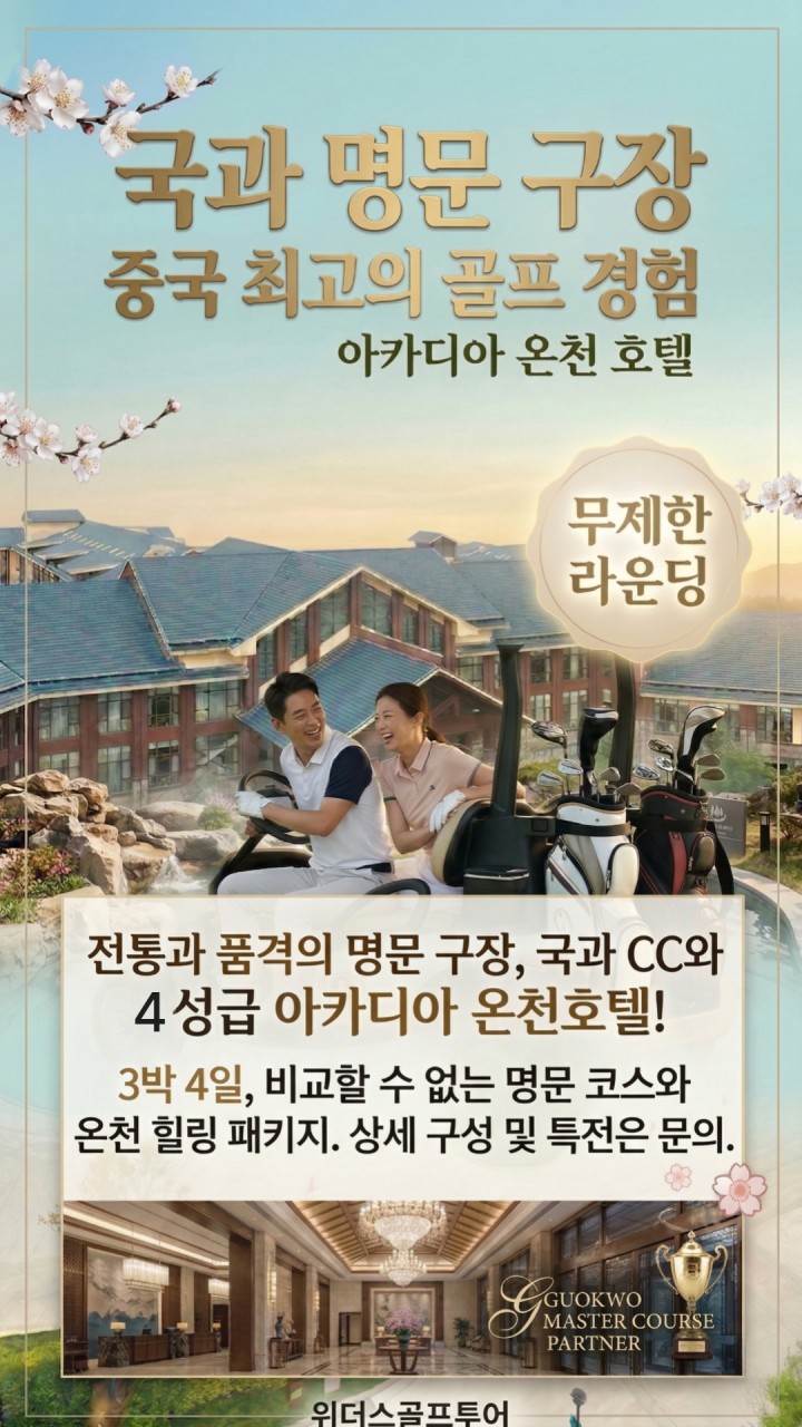 집중!!!! 중국 제남 국과 cc + 아카디아 천연온천 호텔 패키지