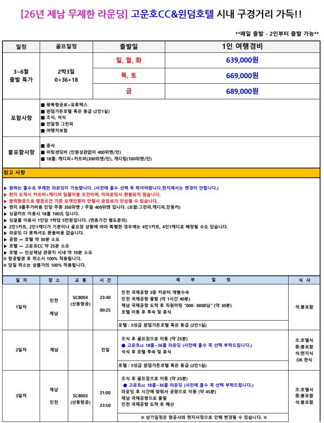 *체류일 18홀 라운딩만 하셔도 상관없습니다
